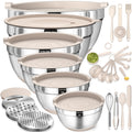 Mixing Bowls with Airtight Lids Set, 26PCS Stainless Steel Khaki Bowls with Grater Attachments, Non-Slip Bottoms & Kitchen Gadgets Set, Size 7, 4, 2.5, 2.0,1.5, 1QT, Great for Mixing & Serving